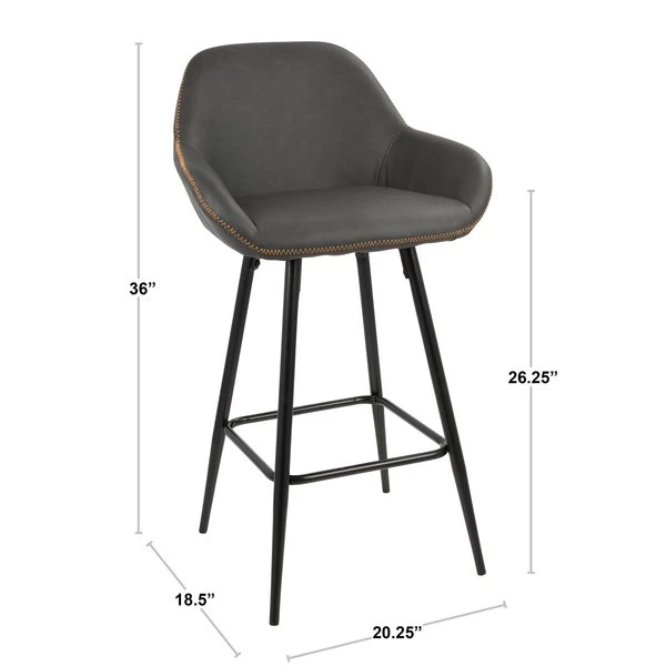 Sophisticated and stalwart, the Clubhouse Counter Stool by LumiSource will be a stylish addition to your dining or entertainment space. Vintage-style faux leather upholstery with zig-zag stitching, black metal fixed-height base with square footrest. Sold in a set of two, available in various upholstery colors.