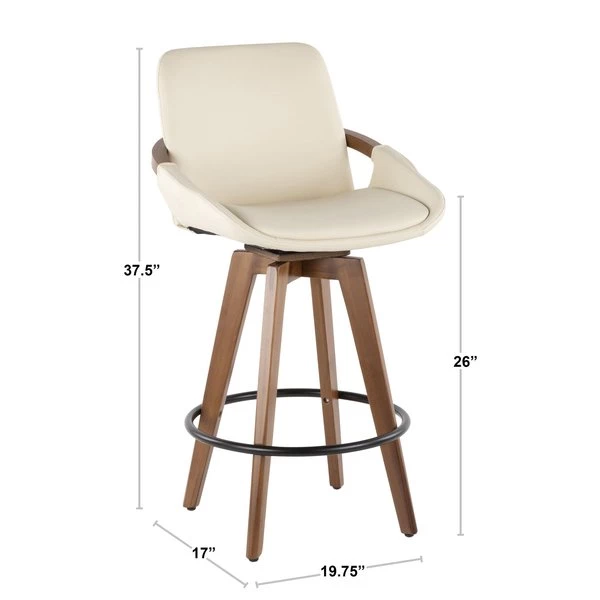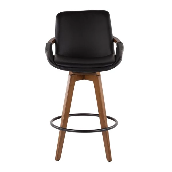 Mid-Century inspired, the Cosmo Counter Stool by LumiSource combines style and comfort! A faux leather seat is accented by stylish walnut wood armrest and legs. Available in a variety of color combinations, choose the one that fits your space the best.