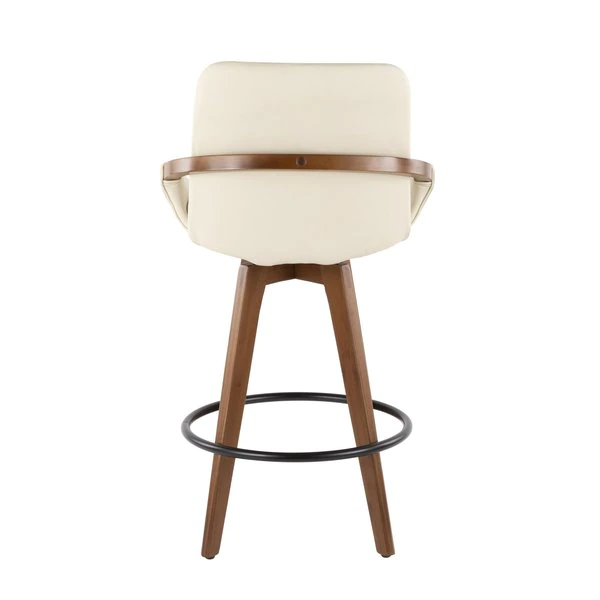 Mid-Century inspired, the Cosmo Counter Stool by LumiSource combines style and comfort! A faux leather seat is accented by stylish walnut wood armrest and legs. Available in a variety of color combinations, choose the one that fits your space the best.