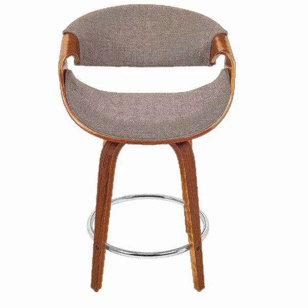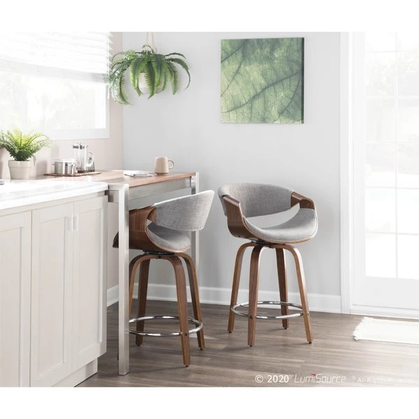 With a curvaceous dose of Mid-Century style, this unique design will look great at your counter area. Featuring a walnut finished stationary wood frame, luxurious woven fabric upholstery, swiveling seat, and stylish armrests. The Curvini is available in grey and cream, choose the color that fits your space the best.