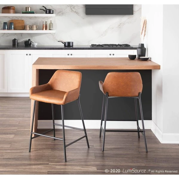 Add stylish and comfortable seating to your kitchen or counter area with the industrial charm of the Daniella Counter Stool by LumiSource. Featuring a sleek faux leather upholstery, padded seat, and backrest and a unique black metal frame. The Daniella is available in a variety of upholstery colors.