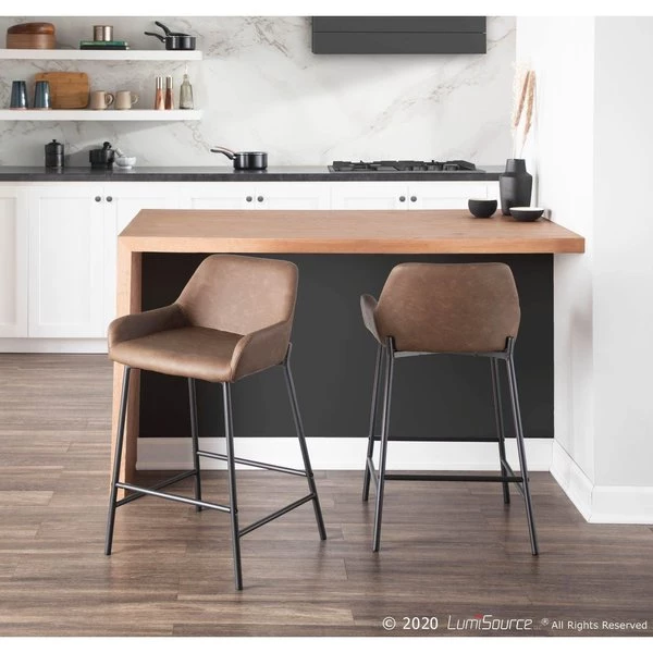 Add stylish and comfortable seating to your kitchen or counter area with the industrial charm of the Daniella Counter Stool by LumiSource. Featuring a sleek faux leather upholstery, padded seat, and backrest and a unique black metal frame. The Daniella is available in a variety of upholstery colors.