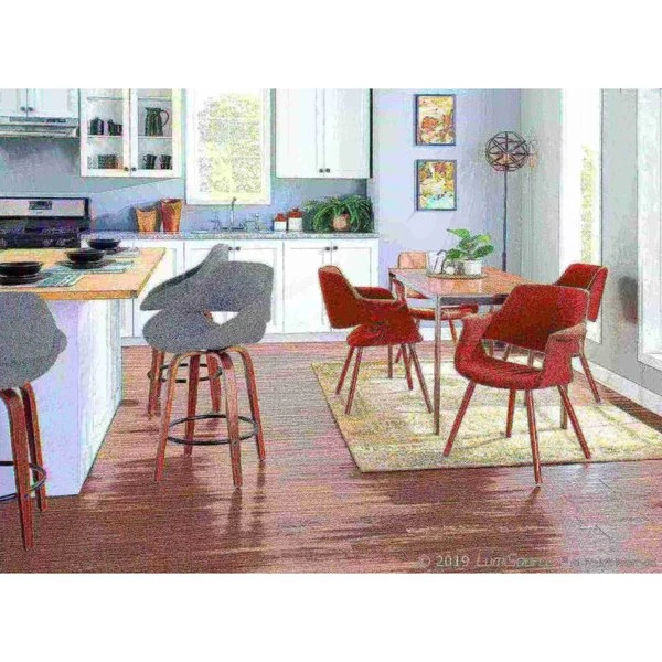 The wide and welcoming seat of the LumiSource Fabrico Counter Stool beckons one to sit and relax. A curved back and contoured upholstered seat is accented by flared walnut wood legs that add to the stylish yet comfortable design. Available in a variety of upholstery colors, choose the one that suits your space best.