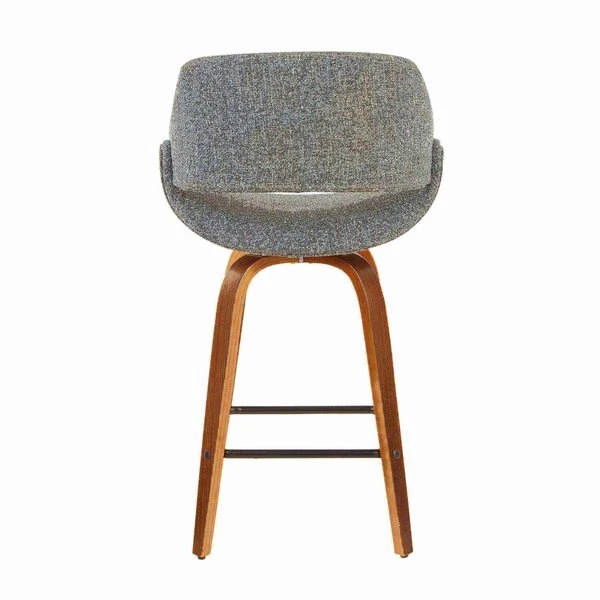 The wide and welcoming seat of the LumiSource Fabrico Counter Stool beckons one to sit and relax. A curved back and contoured upholstered seat is accented by flared walnut wood swivel legs that add to the stylish yet comfortable design. Available in a variety of upholstery colors, choose the one that suits your space best.
