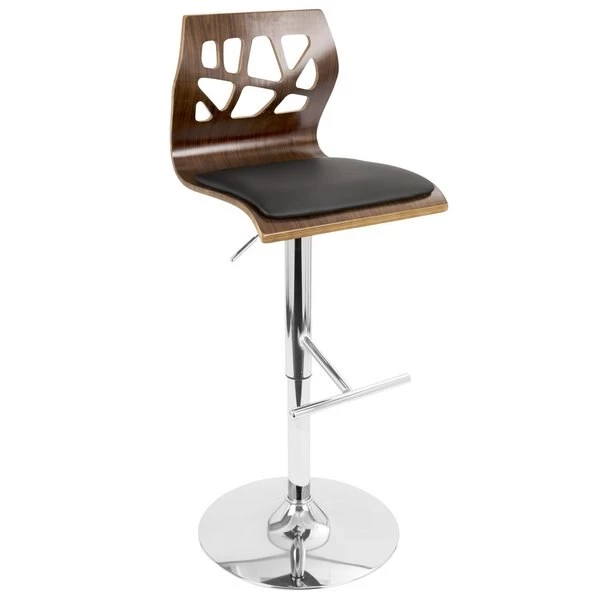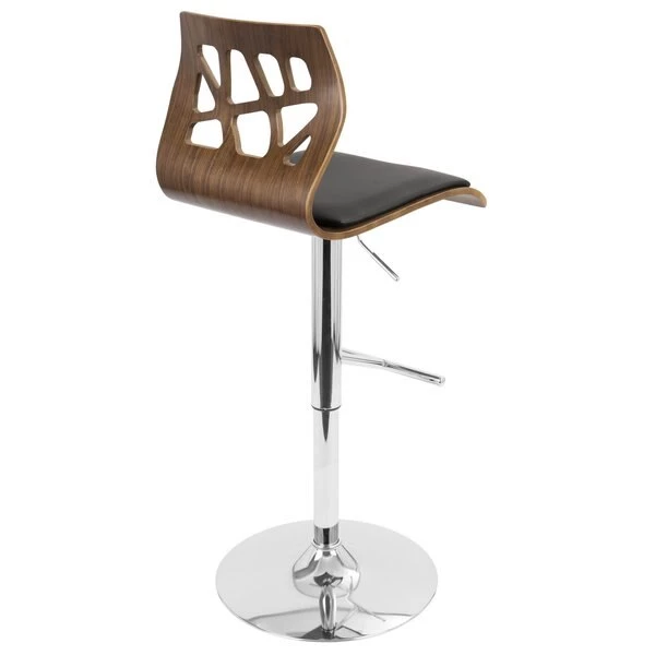The curved wood frame and cut-out backrest of the Folia Bar Stool will add a touch of style to your kitchen or bar. A hydraulic pole allows height to be adjusted while the padded seat and 360-degree swivel add comfort and convenience.
