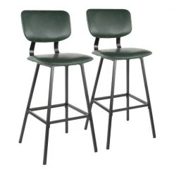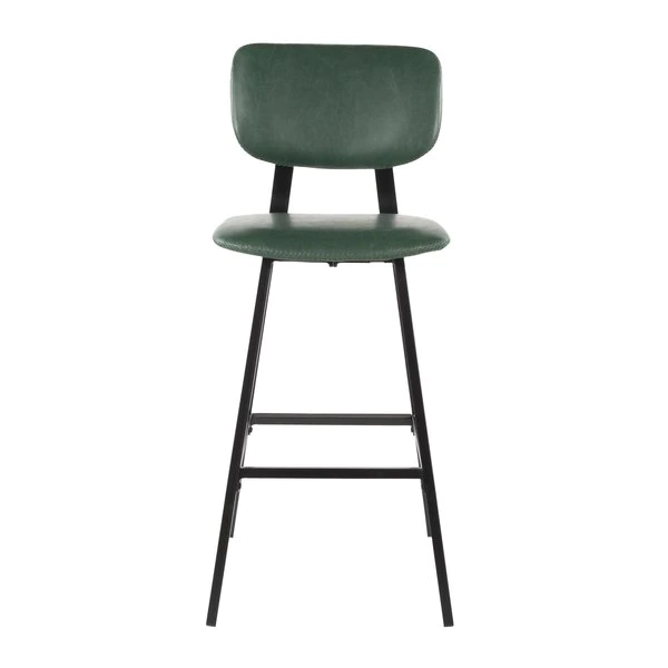 A contemporary take on a classic design, the Foundry Bar Stool by LumiSource features a curved backrest, black metal stationary legs, and a built-in footrest for added comfort. Upholstered in a luxurious faux leather with contrasting stitching, the Foundry Bar Stool is available in a variety of color options, sure to fit your space.