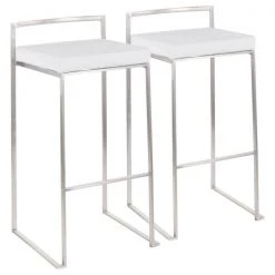 The simple elegance of the Fuji belies its astonishing comfort. Lightweight thin lines that create the simplistic frame and backrest support a thick padded seat cushion. A stackable design for easy storage makes this a great stool for entertaining. With its simple stylishness, the Fuji is sure to match any decor. Available in many color combinations, choose the look that best fits your dining space.
