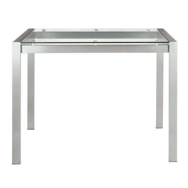 Lumisource Fuji Square Bar Table in Stainless Steel with Clear Glass Top