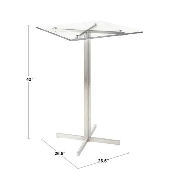 Lumisource Fuji Square Bar Table in Stainless Steel with Clear Glass Top