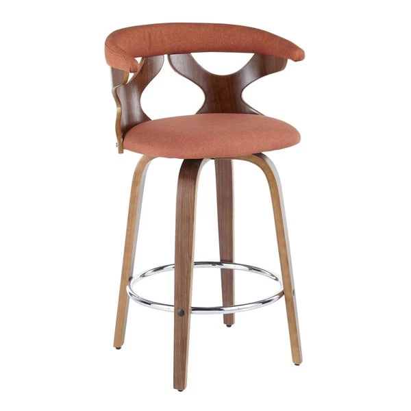 The unique cut-out design that forms the back of the Gardenia Counter Stool adds considerable visual interest to this exciting option for counter height seating. The rounded back adds comfort while the woven fabric upholstery lends a dressed-up air. The Gardenia comes in three color options: light grey, orange, and teal.