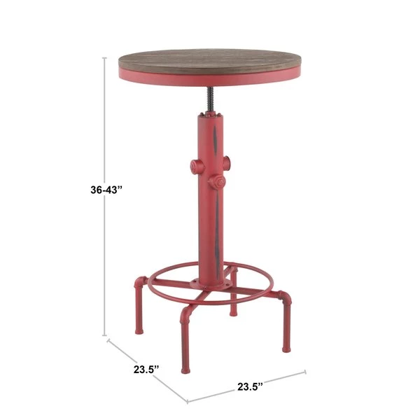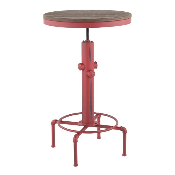 There is no resisting the charm of this fire-hydrant inspired bar table. The Hydra Bar Table features a beautiful combination of wood and metal construction. A sturdy base is accented by a built-in footrest and distressed wood top. Available in a variety of colors, pair with the Hydra Barstool to complete the ultimate industrial look.