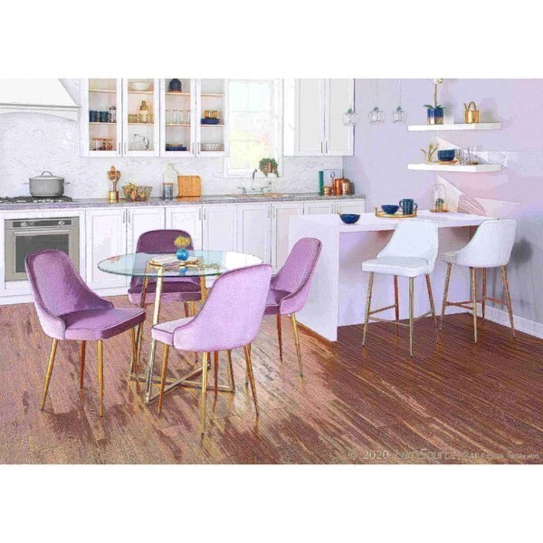 Graceful glam, that's the Marcel Counter Stool from LumiSource. With its subtly curved silhouette, rich upholstery, and alluring metal legs, this counter stool will add striking style to any bar or counter area. Available in various fabric and leg options. Sold in a set of two.