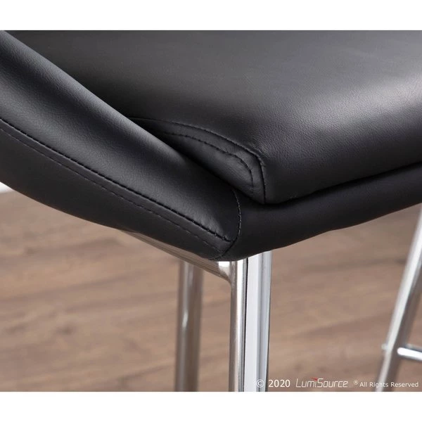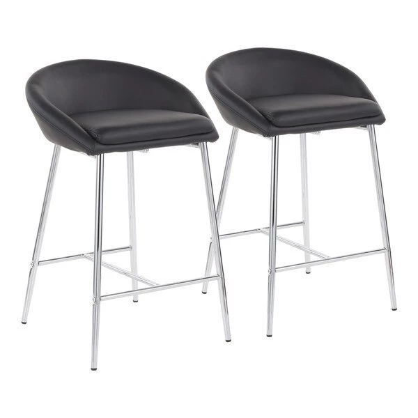 Striking, contemporary, and elegantly grand, that's the Matisse Counter Stool by LumiSource. Fixed-height, trestle-style metal base with a stylish, low-back curved upholstered seat. Available in several modern fabric and metal combinations.