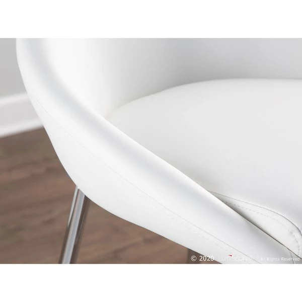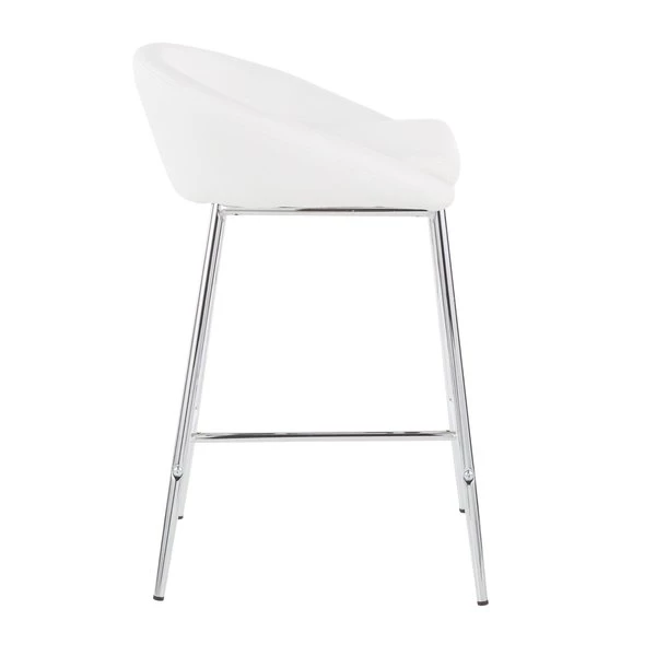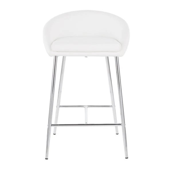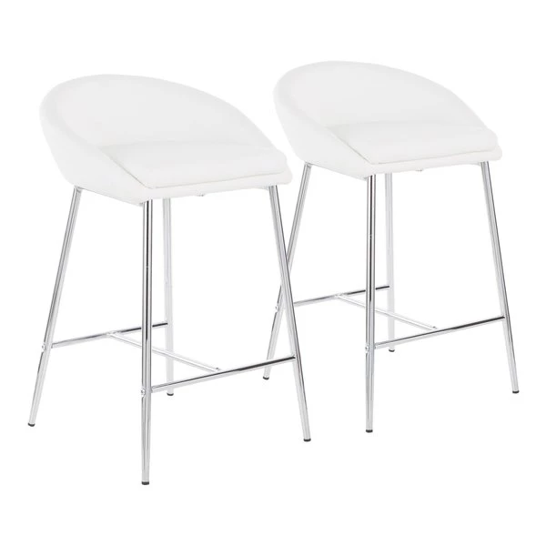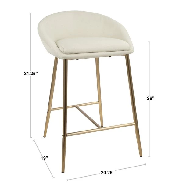 Striking, contemporary, and elegantly grand, that's the Matisse Counter Stool by LumiSource. Fixed-height, trestle-style metal base with a stylish, low-back curved upholstered seat. Available in several modern fabric and metal combinations.