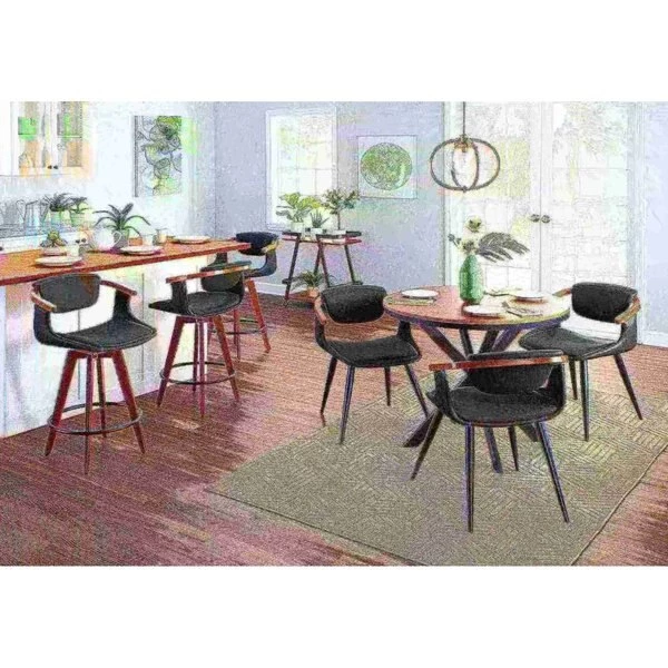 The Mid-Century charm of the Oracle Counter Stool combines sturdy construction with aesthetic appeal. A walnut wood pressed grain bamboo frame is accented by faux leather upholstery and stylish wood legs. Available in a variety of color combinations.
