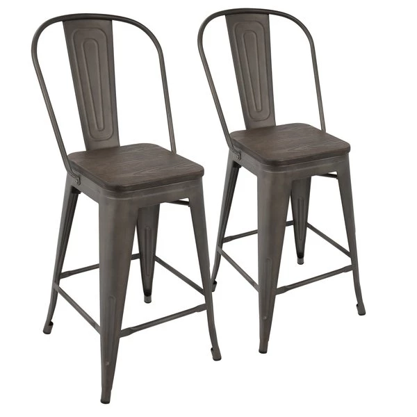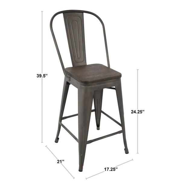 Versatile and stylish with an industrial feel, the LumiSource Oregon High Back Counter Stools will take your space from drab to fab! Use for everyday seating at your bar or as extra guest seating. Built to last, the Oregon Bar Stools are strong, yet lightweight, constructed from steel and wood. You'll love the rustic warehouse vibe combined with the timeworn charm.