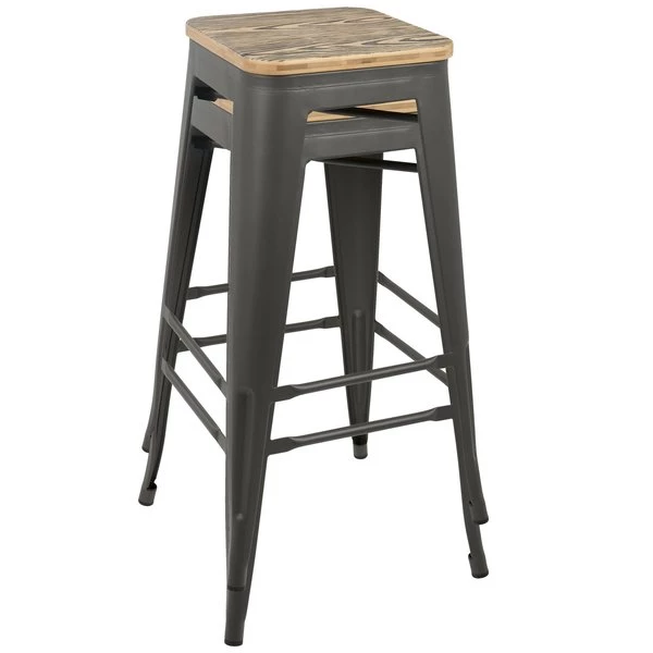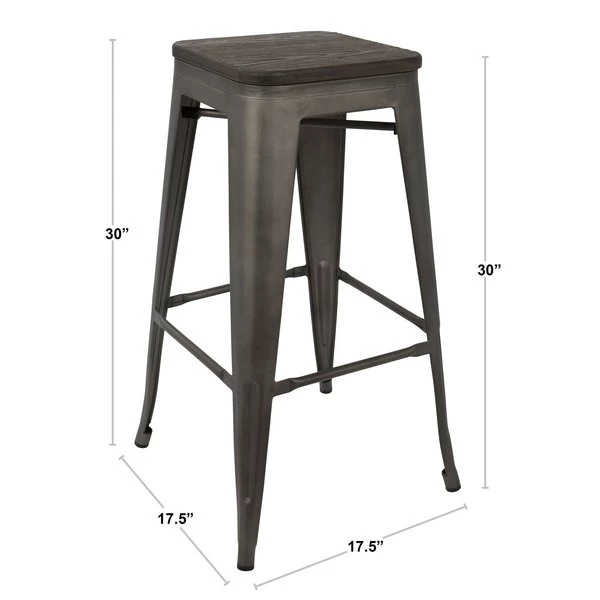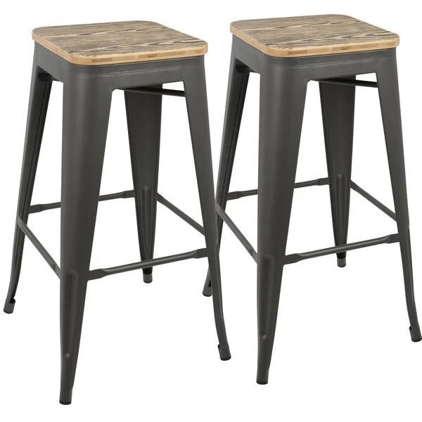 Versatile and stylish with an industrial feel, the LumiSource Oregon Bar Stools will take your space from drab to fab! Use for everyday seating at your bar area or as extra guest seating. Built to last, the Oregon Bar Stool is strong, yet lightweight, constructed from steel and wood. You'll love the rustic warehouse vibe combined with the timeworn charm.