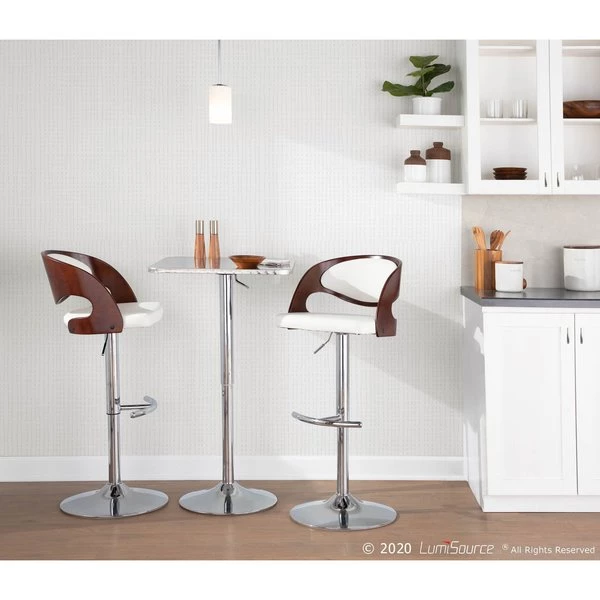 Uncork great kitchen and bar design with the Pino Bar Stool featuring a polished bent wood back and upholstered seat. Hydraulics with 360-degree swivel allow for easy adjustment and the rich color combinations add a lively spirit to this unique stool. Available in several colors, choose the one that suits your space best!