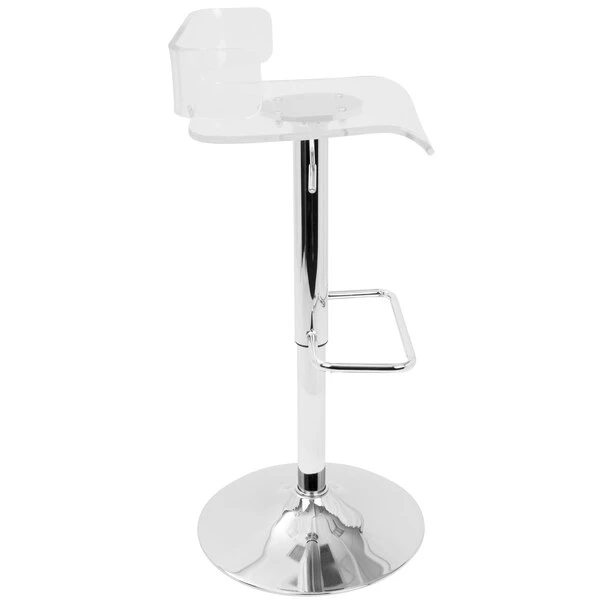 Dine in style with the chic design of the LumiSource Pride Barstool. Ultra-contemporary, this acrylic barstool features a low backrest and a contrasting chrome base. For added comfort and function the adjustable base and swivel function makes this seat perfect for any space.