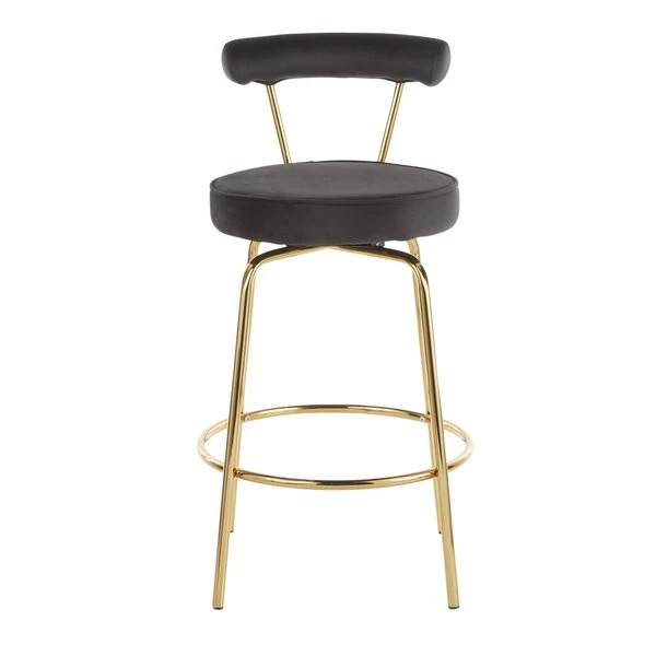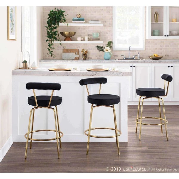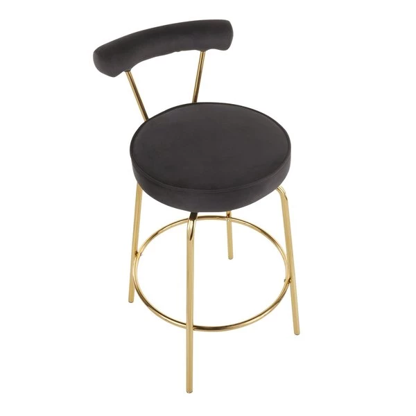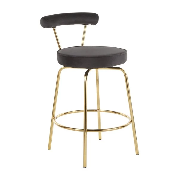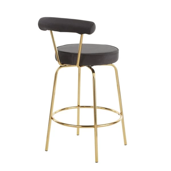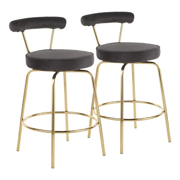 Art deco-inspired, the Rhonda Counter Stool is opulent and striking. The sleek metal frame features tapered legs and a luxe gold finish. A plush velvet upholstery completes the look. Choose from various velvet colors to complement your dining or counter area.