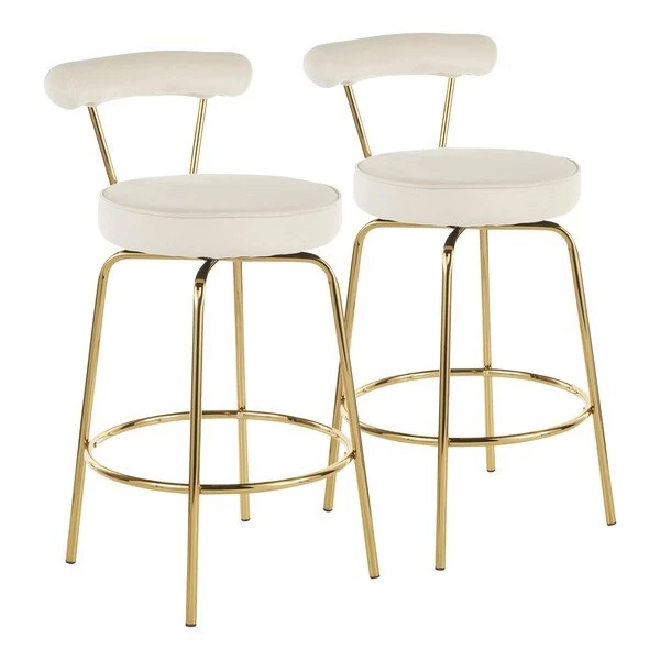 Art deco-inspired, the Rhonda Counter Stool is opulent and striking. The sleek metal frame features tapered legs and a luxe gold finish. A plush velvet upholstery completes the look. Choose from various velvet colors to complement your dining or counter area.