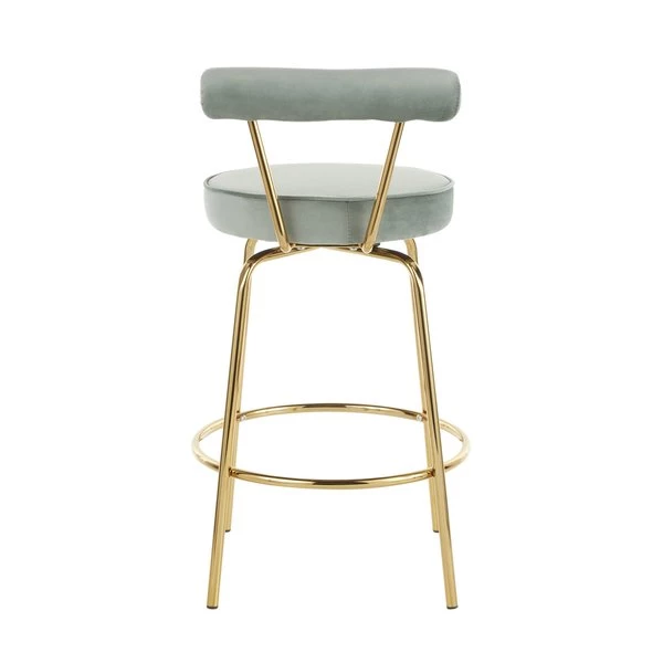 Art deco-inspired, the Rhonda Counter Stool is opulent and striking. The sleek metal frame features tapered legs and a luxe gold finish. A plush velvet upholstery completes the look. Choose from various velvet colors to complement your dining or counter area.