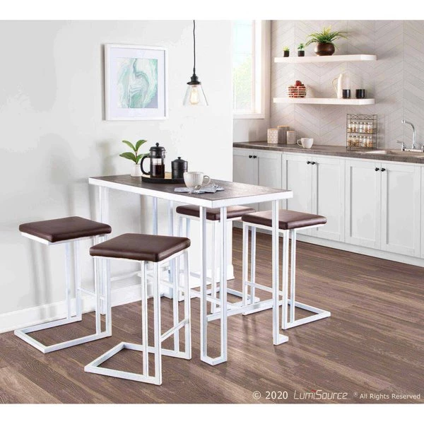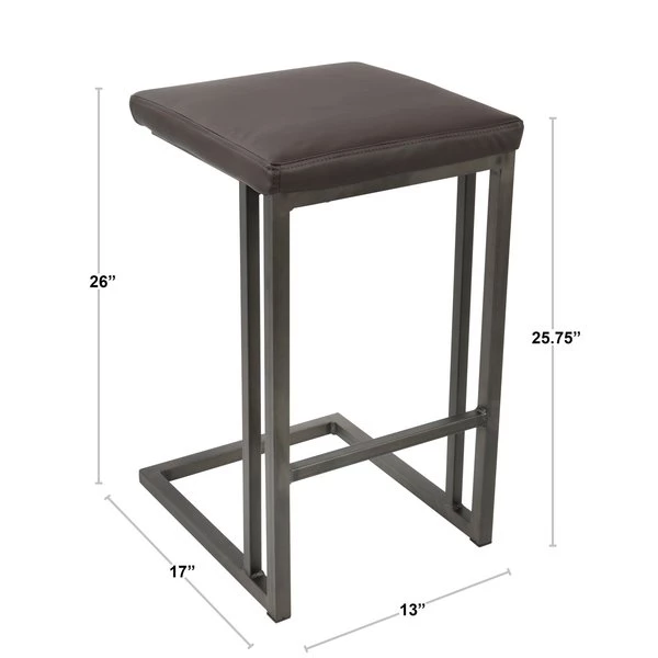Sharp and clean, the mixed material design of the LumiSource Roman Counter Stool is a great addition to any modern aesthetic. Featuring an angular metal frame and upholstered in faux leather, the backless design offers an ideal and minimalistic complement to your chic and modern decor.