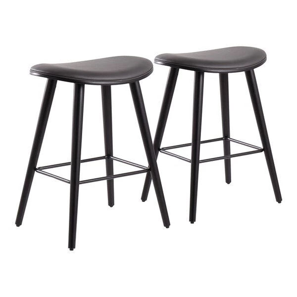 Ultimate comfort meets the ultimate style in the Saddle Counter Stool by LumiSource. With a generous contoured upholstered seat atop tapered wood legs and metal footrest, this fixed-base stool puts you in the saddle. Available in a variety of finishes and upholstery options.