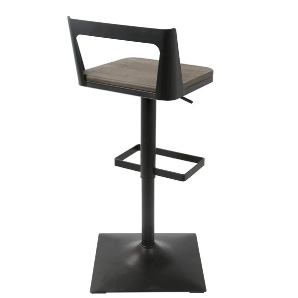 The sleek, angular construction of the Samurai Barstool is sure to make a bold statement in any living space. Lines of the rectangular-bordered backrest are echoed in the same shape of the footrest, while the combination of wood and metal contribute to an eye-catching piece.