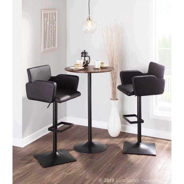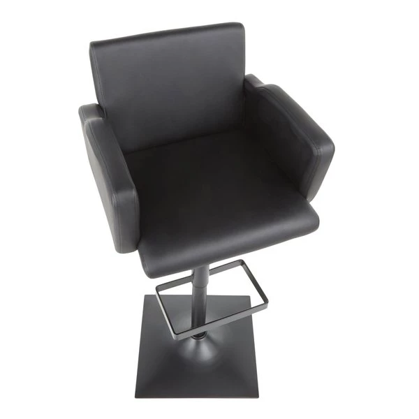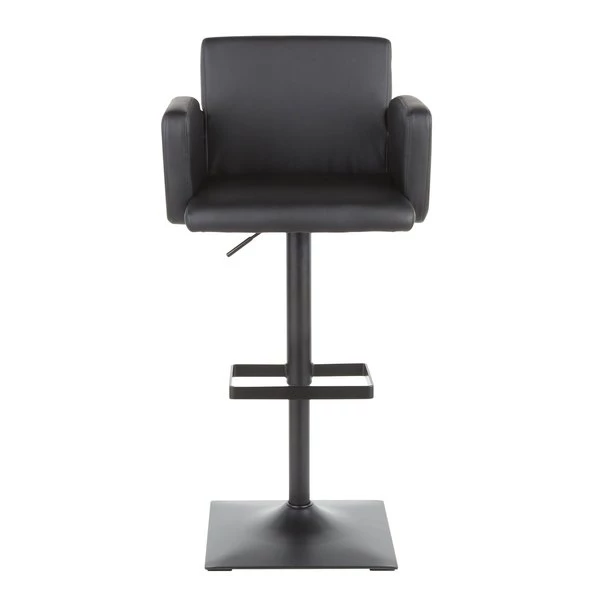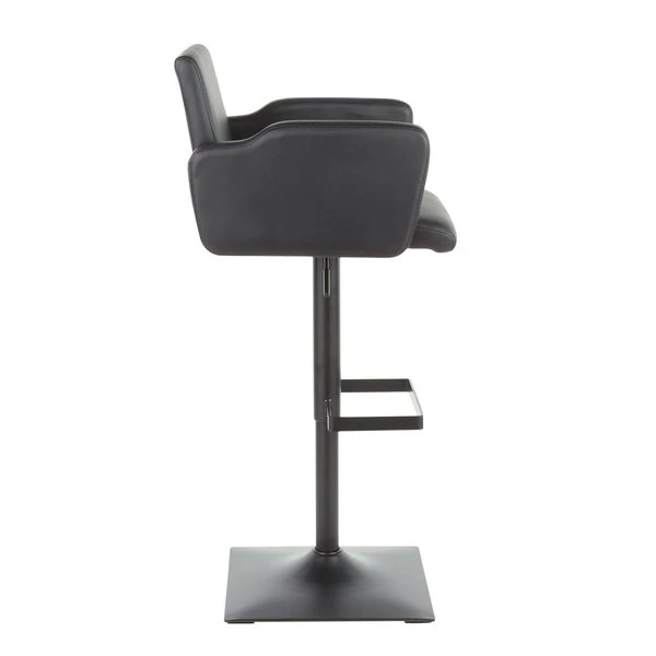 The Sergio Bar Stool was designed with comfort in mind. The padded seat, high back and armrests make this the ultimate stool for relaxation. The Sergio is supported by an adjustable metal base with built-in footrest. Get comfy and look great doing it!