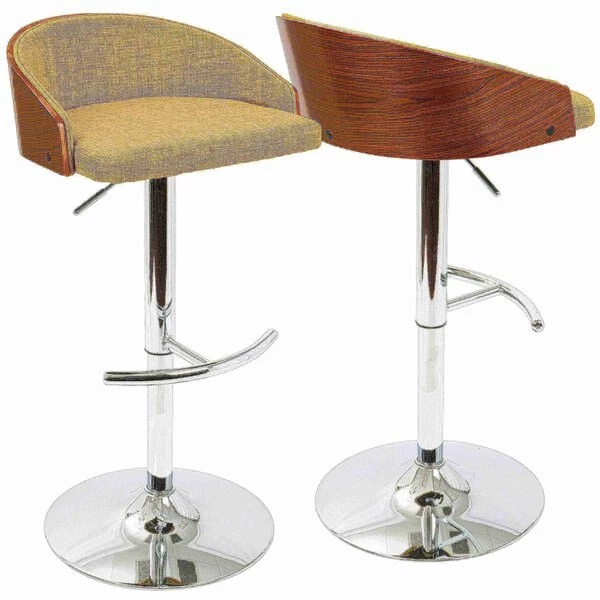 Add a dynamic twist to your bar or counter with the Shiraz Barstool. Woven fabric upholstery accented by walnut-finished bent wood makes for a stylish combination. With an adjustable chrome base, the Shiraz Barstool is the perfect option for any area.