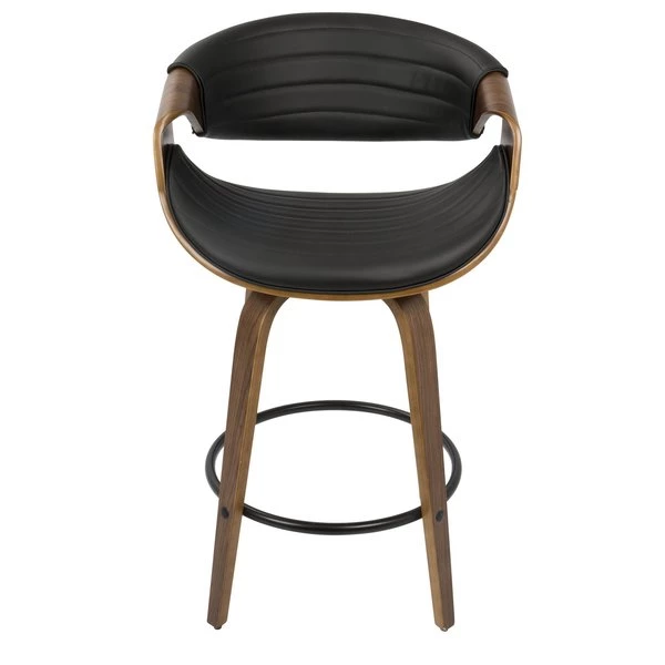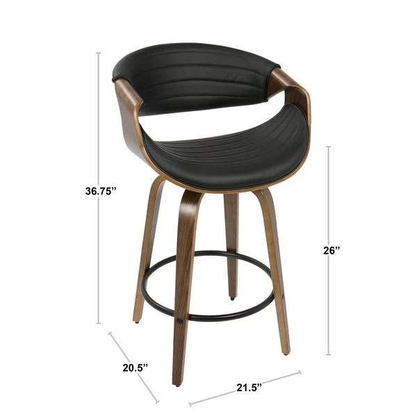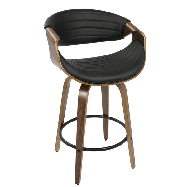 A curvaceous dose of Mid-Century style, the unique design, and silhouette of the Symphony Counter Stool will look great pulled up to any counter! Upholstered in a sleek faux leather accented with vertical tufting and walnut colored bent wood legs, the Symphony comes in a variety of colors to fit in any room.