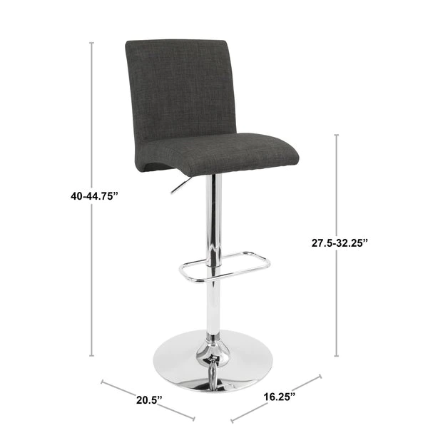 The Tintori Barstool is both clean and modern. Featuring a classy fabric seat with padding and a 360-degree swivel for additional comfort and convenience. The adjustable seat allows for the Tintori Barstool to be adjusted from counter to bar height.