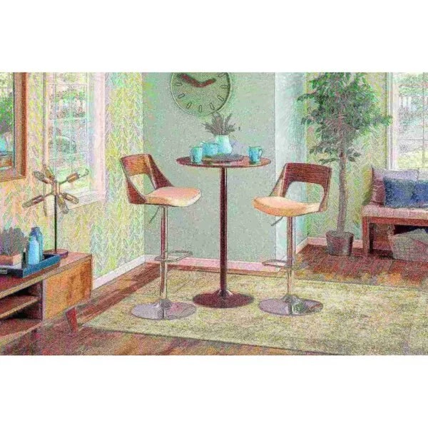 Lumisource Fuji Square Bar Table in Stainless Steel with Walnut Wood Top