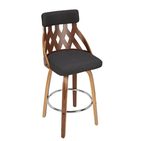 Add Mid-Century flair to your counter or dining area with the LumiSource York Counter Stool. A walnut wood, lattice style backrest is accented by luxurious upholstery and distinctive tapered walnut wood legs. Featuring an armless design and 360-degree swivel capabilities, the York Counter Stool will fit almost anywhere. Available in a variety of color options, choose the one that fits your space the best.