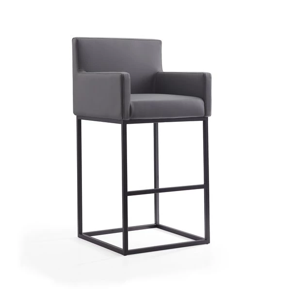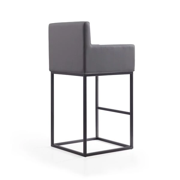 An eye-catching modern profile with a touch of glam. Genuine Leather wraps the cleverly shaped arms, back, and gently cushioned seat, resting on sturdy, slender metal legs. A footrest runs along the front of the stool, providing added comfort to this chic piece.