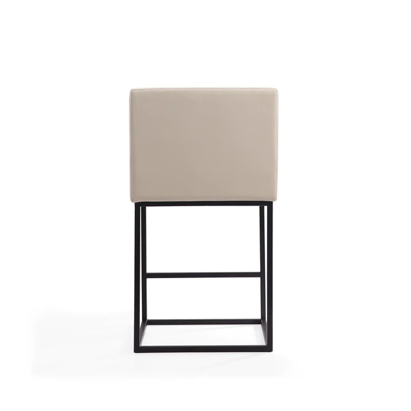 An eye-catching modern profile with a touch of glam. Genuine Leather wraps the cleverly shaped arms, back, and gently cushioned seat, resting on sturdy, slender metal legs. A footrest runs along the front of the stool, providing added comfort to this chic piece.
