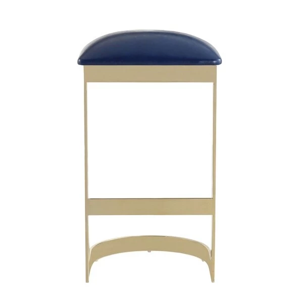 A study in balance. This bar stool is all understated luxury. Featuring a floating frame design with a curved base, its unique modern style creates an undeniable sense of lightness. Smooth Faux Leather upholstery is tailored into a sleek cushioned seat that rests easily on a polished metal base, enhancing its effortless feel. Its chic polished brass finish lends a subtly sumptuous touch that will elevate the atmosphere in any dining space. To complete the look, coordinate with the Aura Dining Chair.