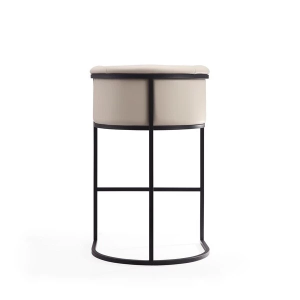 Our cosmopolitan Modernist stool embodies the elegance and pared-down aesthetic of midcentury furnishings. Amply padded for comfort, the upholstered seat is supported by an open metal frame that echoes its clean, geometric lines.