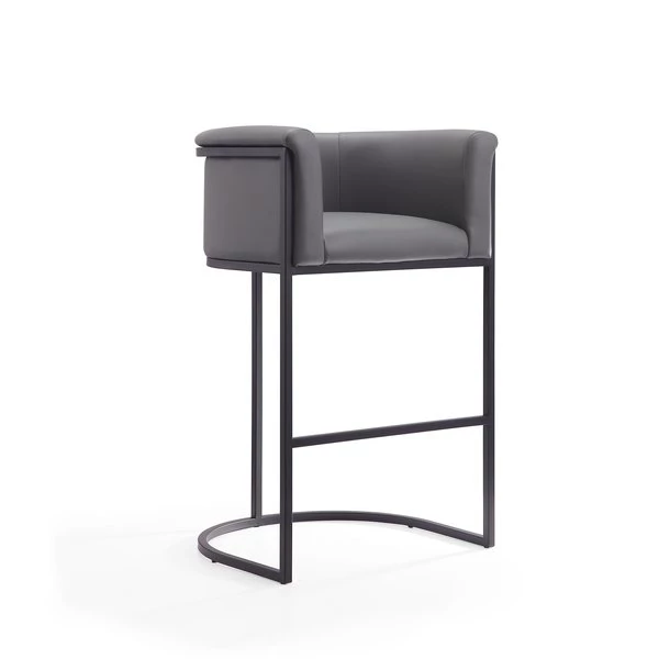 Our cosmopolitan Modernist stool embodies the elegance and pared-down aesthetic of midcentury furnishings. Amply padded for comfort, the upholstered seat is supported by an open metal frame that echoes its clean, geometric lines.