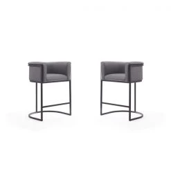 Our Modernist counter stool embodies the elegance and pared-down aesthetic of midcentury furnishings. Amply padded for comfort, the upholstered seat is supported by an open metal frame that echoes its clean, geometric lines.