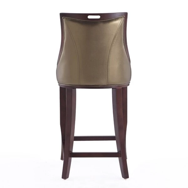 Subtle design, boldly executed. Sleek and graceful, this elegant bar stool is all about refined curves. Featuring a subtle hourglass silhouette, the rich walnut-finished wood frame is simple yet classic, taking on an eye-catching, tailored look that’s utterly sophisticated.