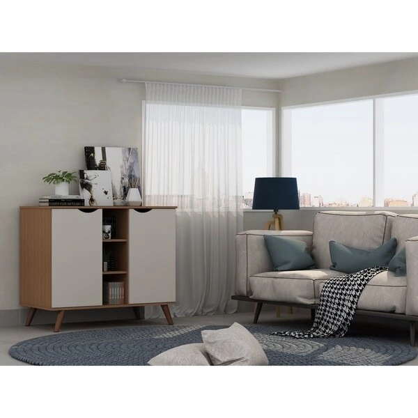 A perfect blend of mid-century modern design and easy functionality, this sideboard is stylish and practical all at once, with splayed legs and a subtle streamlined silhouette featuring two cabinet doors with concealed storage to tuck way tableware, family albums, games, media accessories, and more. Display framed photos on top, an artful lamp, or some fresh florals to make it your own.