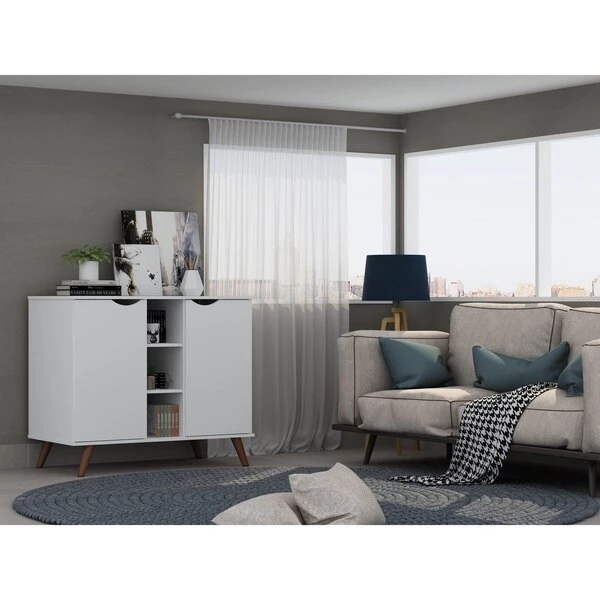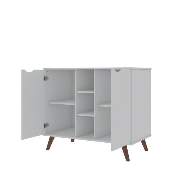 A perfect blend of mid-century modern design and easy functionality, this sideboard is stylish and practical all at once, with splayed legs and a subtle streamlined silhouette featuring two cabinet doors with concealed storage to tuck way tableware, family albums, games, media accessories, and more. Display framed photos on top, an artful lamp, or some fresh florals to make it your own.