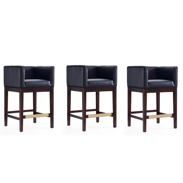 Tight back squared frame upholstery in leather with high density foam, this counter stool brings you comfort and class with it sleek design and gold metal footrest.