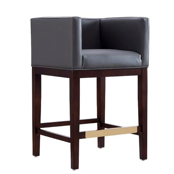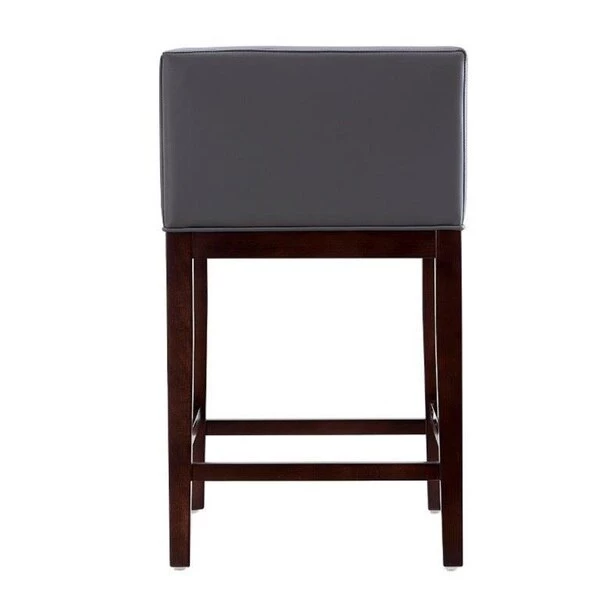 Tight back squared frame upholstery in leather with high density foam, this counter stool brings you comfort and class with it sleek design and gold metal footrest.