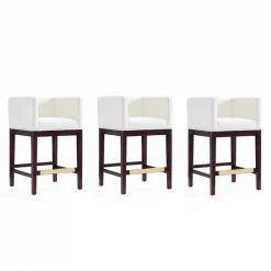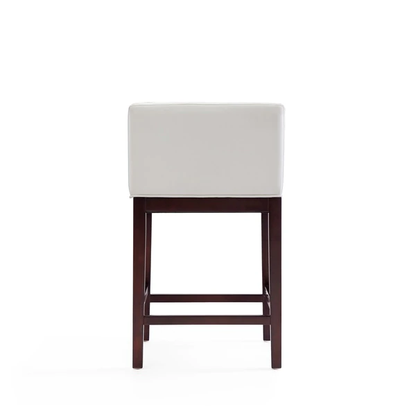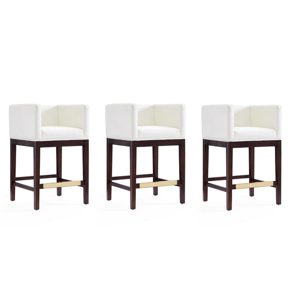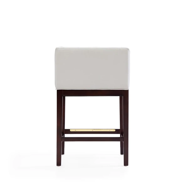 Tight back squared frame upholstery in leather with high density foam, this counter stool brings you comfort and class with it sleek design and gold metal footrest.