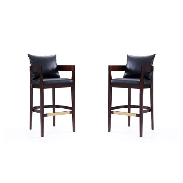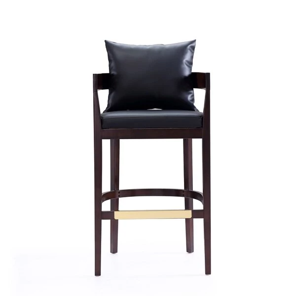 Standing on solid wood legs, this stool's wide cushioned seat and back, offers comfort and a clean-lined aesthetic to kitchen islands and bar tops. Accented with a gold finished footrest, casual comfort meets sleek and chic modern design to update or accent your home's upscale decor.
