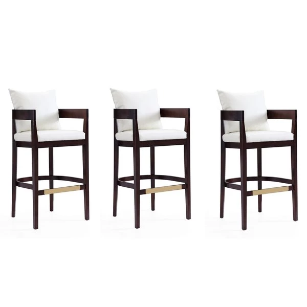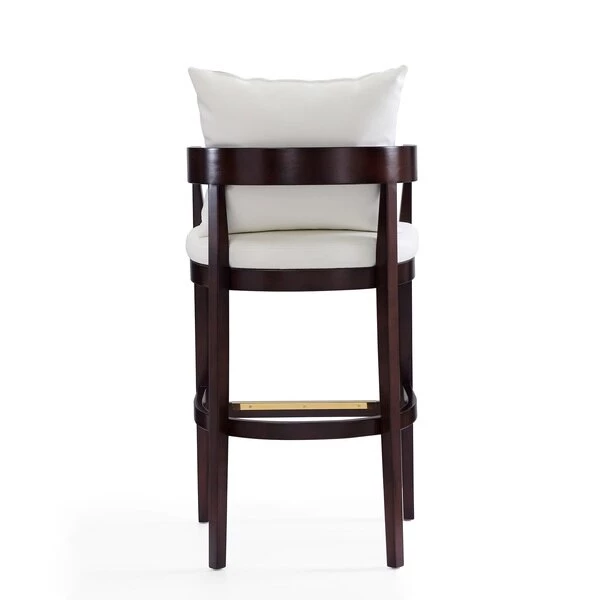 Standing on solid wood legs, this stool's wide cushioned seat and back, offers comfort and a clean-lined aesthetic to kitchen islands and bar tops. Accented with a gold finished footrest, casual comfort meets sleek and chic modern design to update or accent your home's upscale decor.