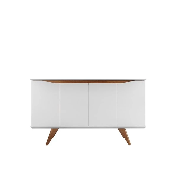 Mid Century – Modern Buffet Stand and Sideboard for Dining and Living Room Use. * 53.15 in. Length, 30.67 in. Height, 17.4 in. Depth. * Recommended for a 50" TV. * Includes 4 Doors with 4 Fixed Shelves. * The Tabletop and Base Features Smooth Rounded Edges. * 90° Open Door Style with Dip Beveled Door Handles. * Fashionable Splayed Legs made from Solid Wood for Extra Durability. * Home Assembly Required. All Hardware Included